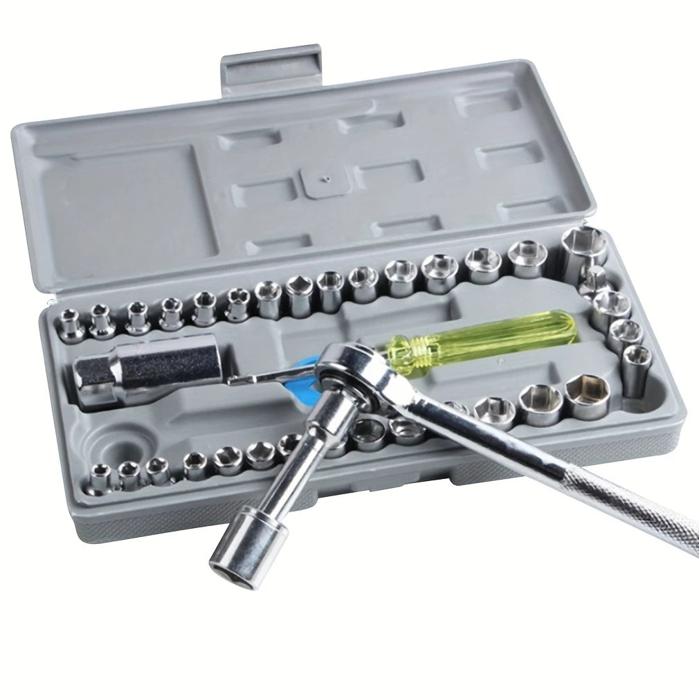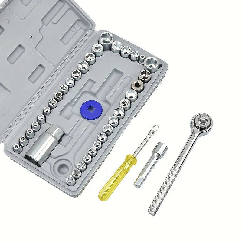 -Conjunto de soquetes com 40 peças com encaixe de 1/4 e 3/8, soquetes em milímetros e polegadas.