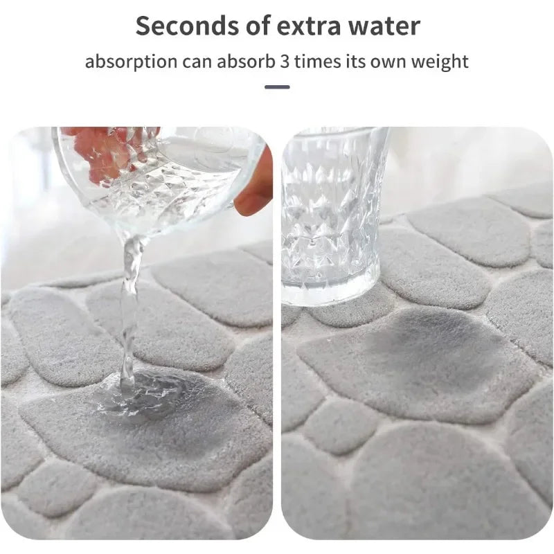 SUPER ABSORVENTE O excelente absorvente do tapete pode secar imediatamente seus pés quando você pisa neles, proteger seus pés do piso frio e evitar que o piso fique molhado.